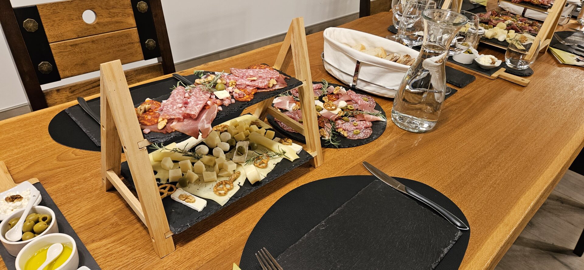 - Bőséges hidegtál és borkorcsolya: Sajtválogatás, sonkatál, sajtkrém, olívabogyó, olívaolaj